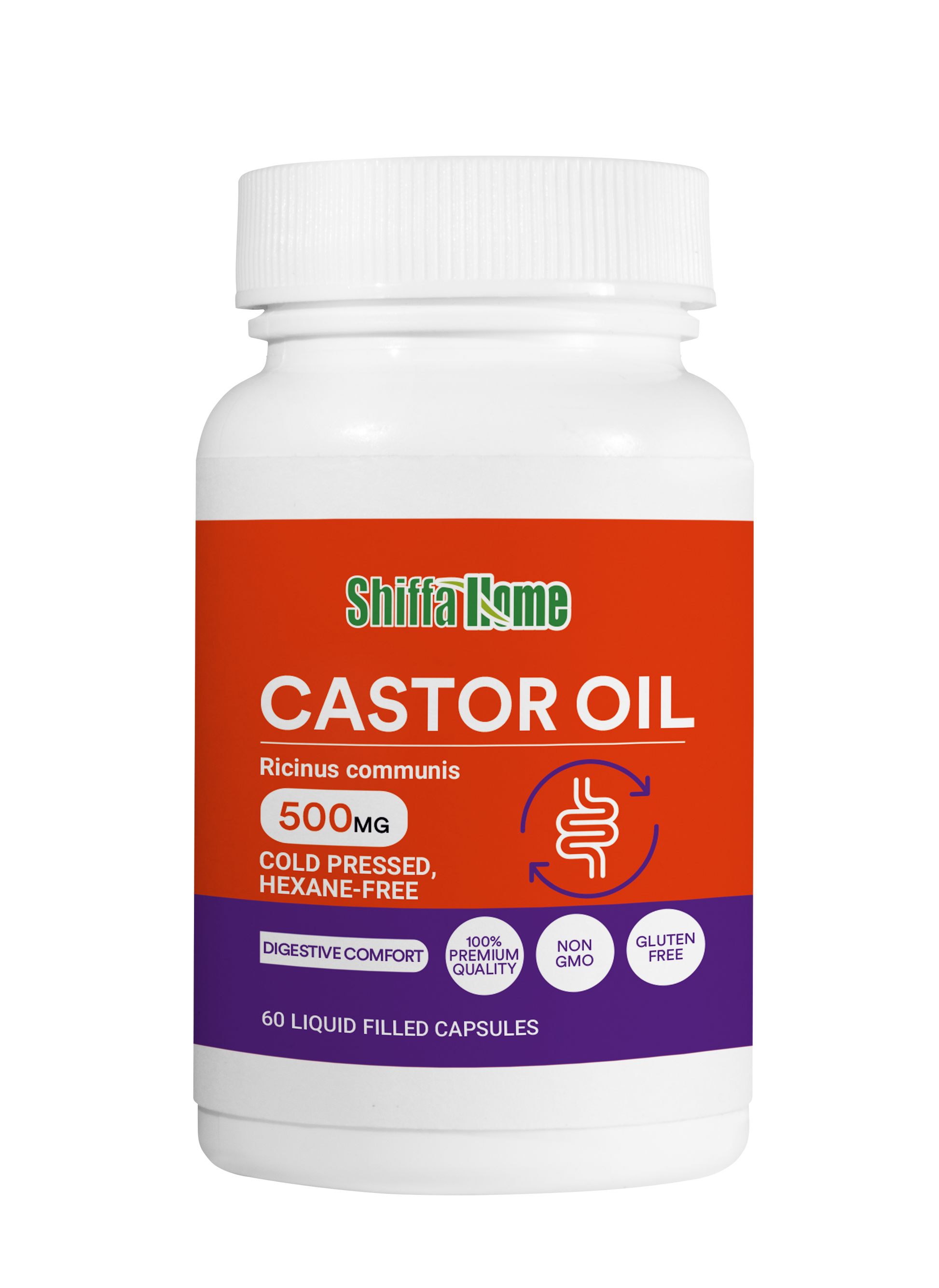 Experience the natural power of Shiffa Home Castor Oil—a traditional remedy now available in easy-to-take, liquid-filled capsules. Sourced from Ricinus communis and cold-pressed without hexane, this premium castor oil supplement supports digestive comfort, promotes regularity, and contributes to overall gut health.