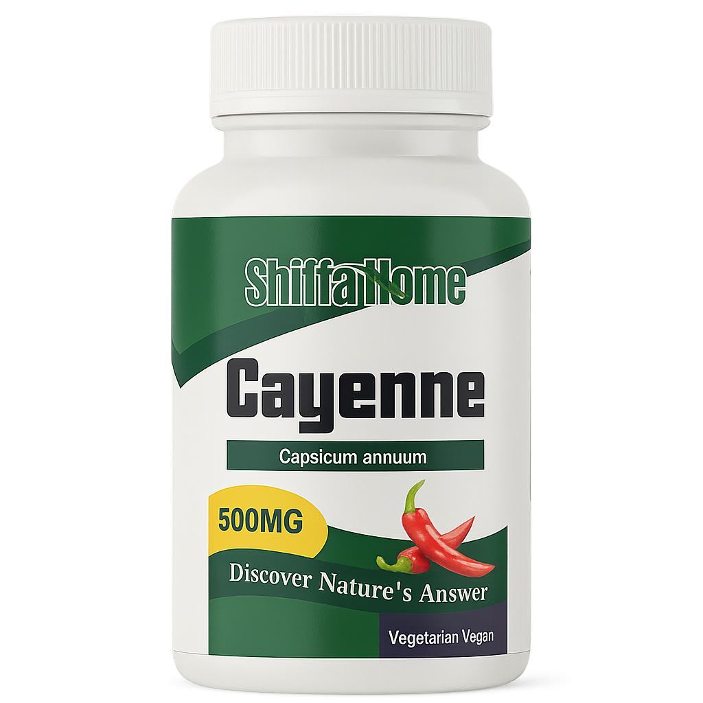 Shiffa Home Cayenne is formulated with 500mg of pure Capsicum annuum, a naturally warming herb rich in active plant compounds like capsaicin. Traditionally used for its circulation and digestive benefits, cayenne is also known for its natural antioxidant properties, helping the body combat everyday oxidative stress.