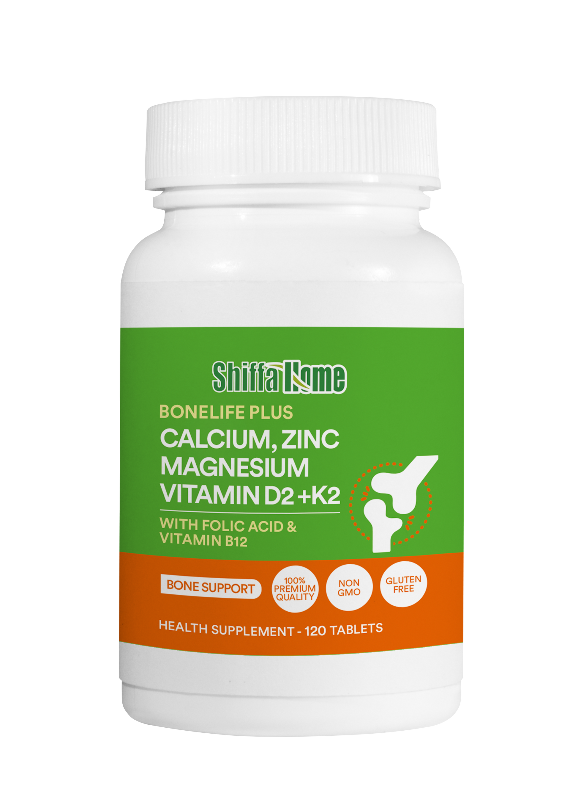 Strengthen your bones the smart way with Shiffa Home Bonelife Plus, a comprehensive blend of essential minerals and vitamins designed to promote optimal bone health and density. With the synergistic power of Calcium, Magnesium, Zinc, Vitamin D2, K2, Folic Acid, and Vitamin B12, this advanced formula helps improve calcium absorption, supports bone mineralization, and maintains overall skeletal strength.