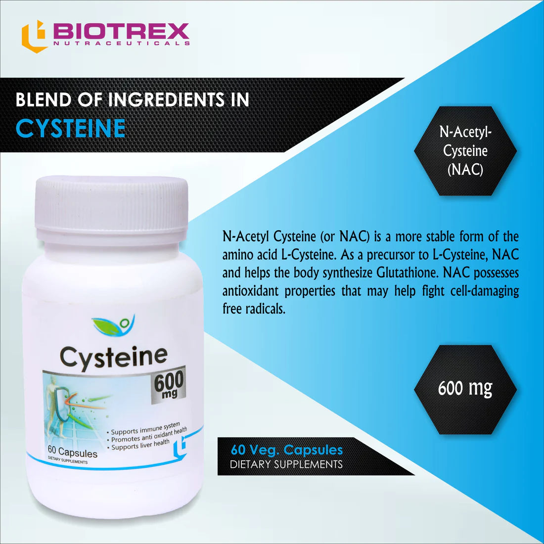 Cysteine 600mg - 60 Capsules