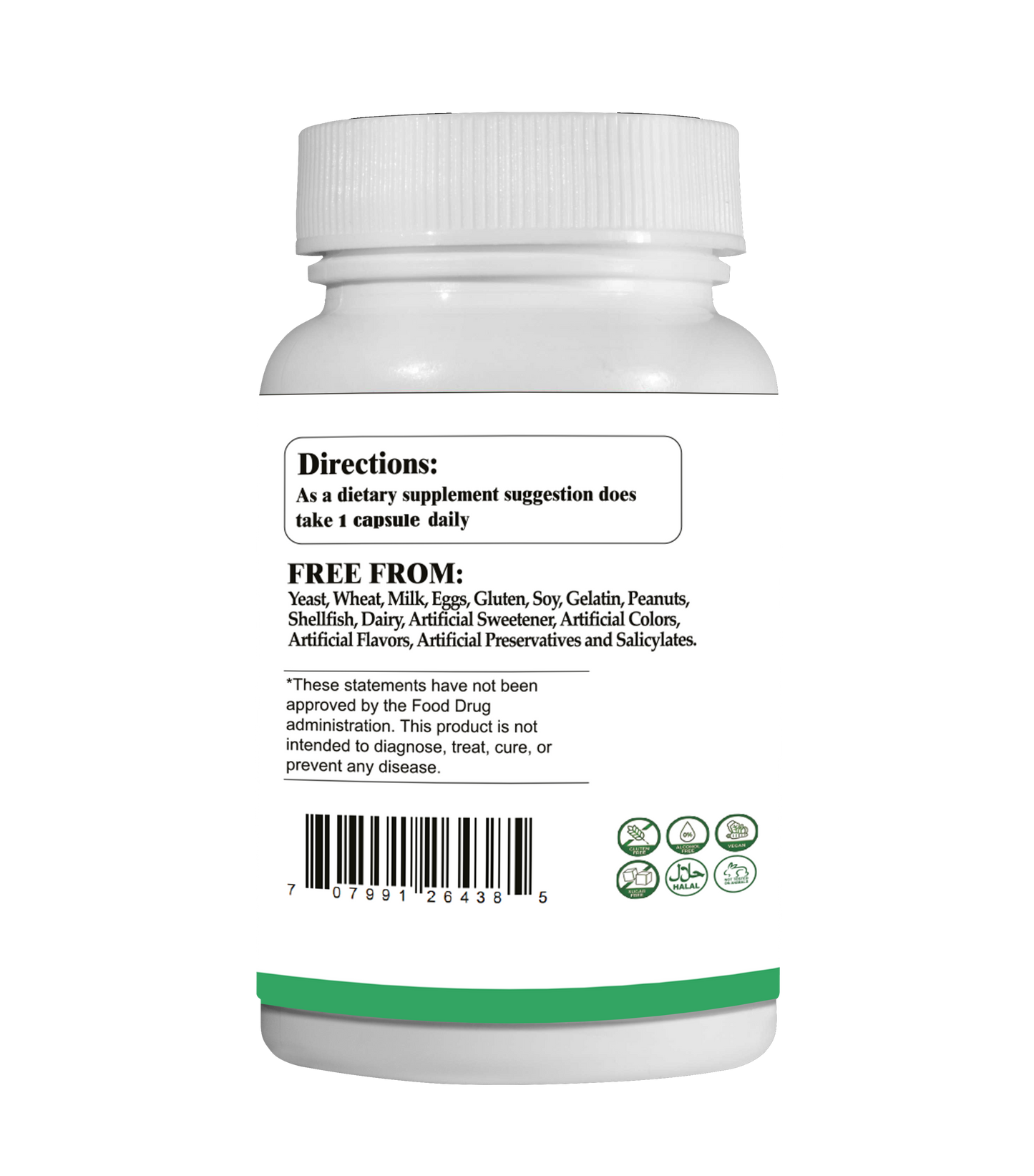 Other ingredients: Hypromellose (capsule), Magnesium citrate, silicon dioxide, microcrystalline cellulose